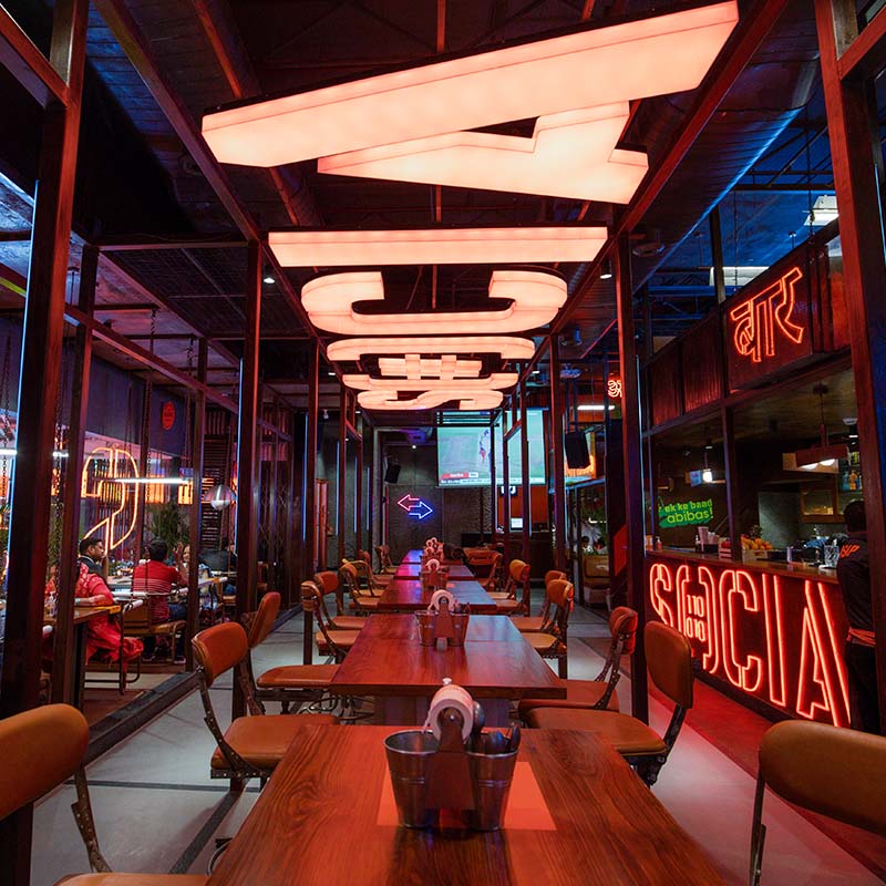 Rajouri Garden SOCIAL is bringing West Delhi’s urban vibe straight to you, taking inspo from the hustle of the iconic Rajouri Garden market. Step inside and you’re on a sensory trip—think cool mechanical elements, market-style setups, and hints of OG Rajouri slang that hit you with all the nostalgia feels.