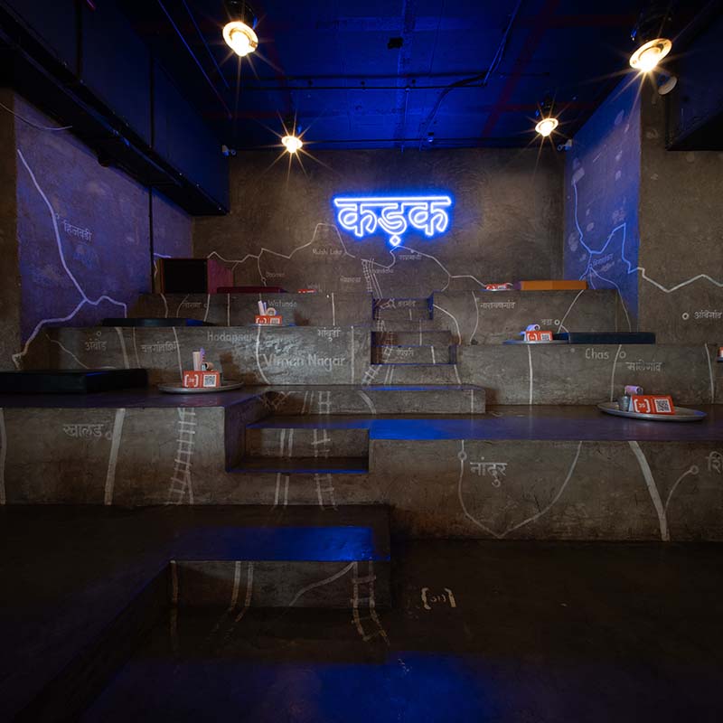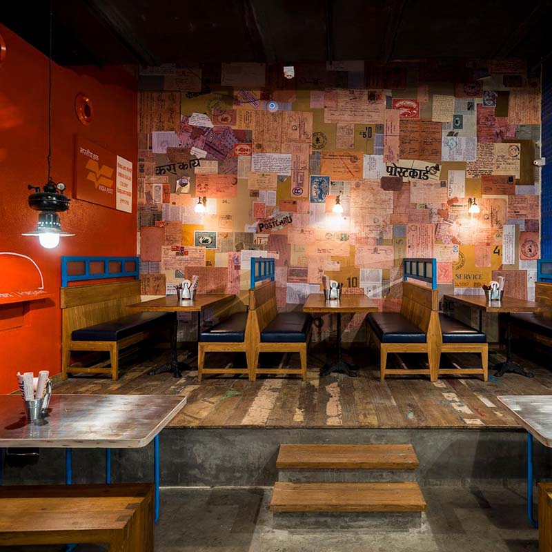 The ode to Pune’s journey is further carried on by the interiors that immediately evoke the winding lanes of old Poona with its vintage black and white photo frames depicting the history of the local people in an unbroken timeline – with one wall bearing the red oil paint of the city’s post office, now little used but still well-loved; while postcards, old-school newspapers and pages picked from discarded school books further add to this overall sepia tinged afterglow.