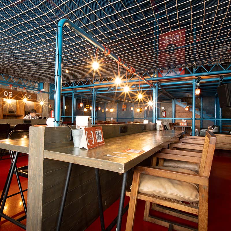 If you’re looking to get your work mode on, look no further. With a suspended trampoline to help you zone out, work out of and host your brainstorming sessions, promising a space that is buzzing with ideas, Viman Nagar Social has everything an office, cafe and bar has and a lot more.