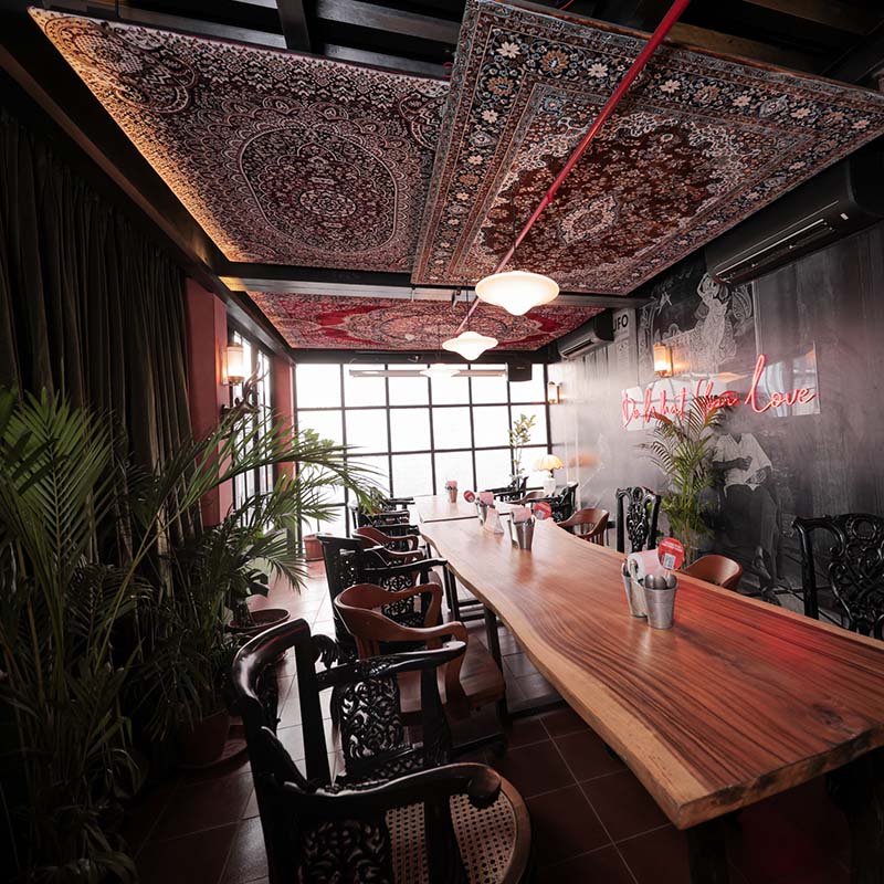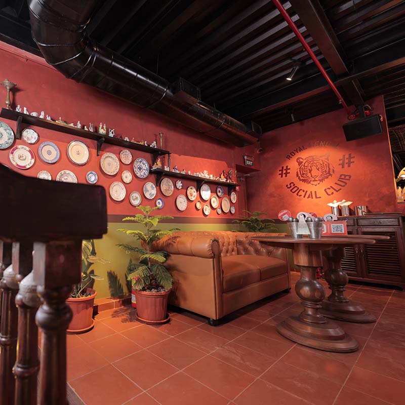 Kolkata’s first SOCIAL is basically a love letter to the City of Joy. Step inside, and you’ll find all the things that make Kolkata special—wooden mailboxes, louvre windows, and cozy cabin-style spaces that nod to the city’s food culture. The whole vibe captures the essence of local life, from the iconic adda sessions and the vibrant energy of Durga Pujo to the tram sounds and the city’s rich colonial history. Expect to see classic Kolkata touches like alpona art and hand-drawn rickshaws