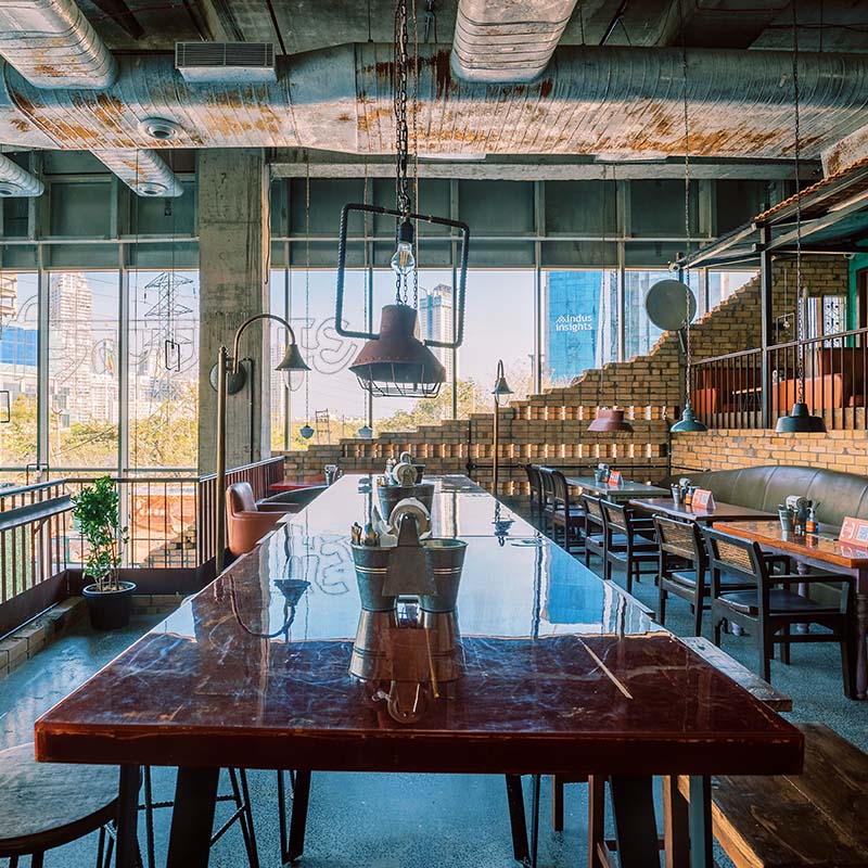 Enclosed in the glass facade of the M3M mall, Gurgaon, the distinct material palette alluding to the vernacular elements of a favela, makes it a spot hard to miss even from a distance. The material selection is careful and layered thoroughly to give an essence of inadvertent details, making the space seem as natural as possible. While the space is ideal for breezy community lunches in the afternoon, it doubles up as a high-octane bar in the evenings, where the day’s work meets the night’s play.