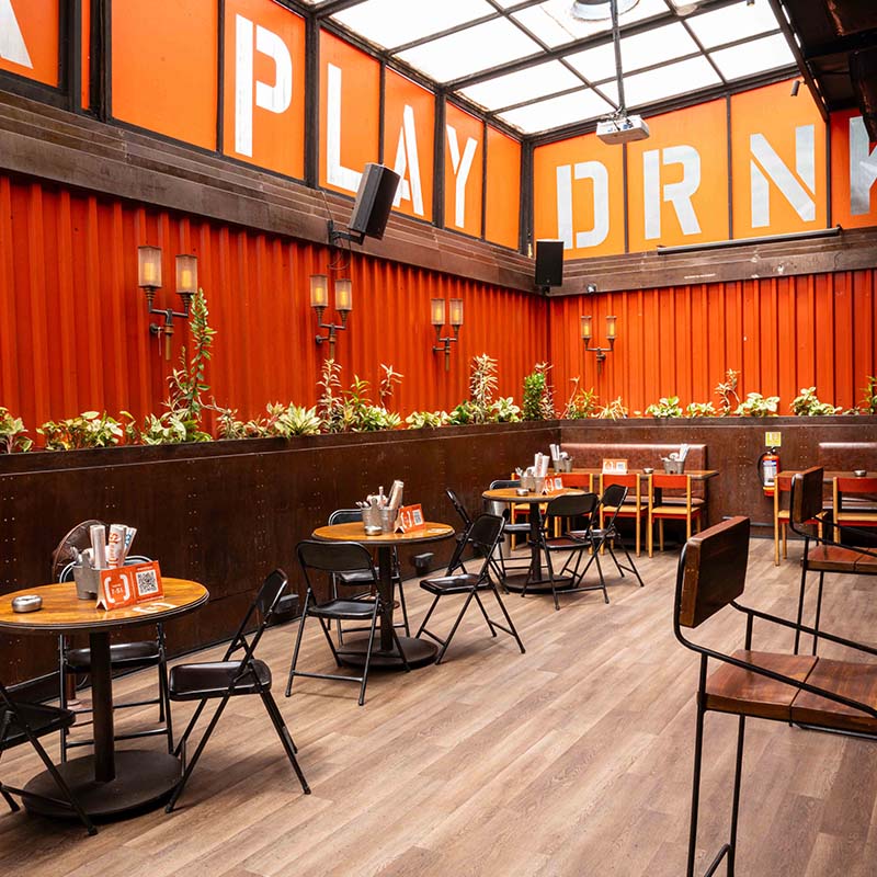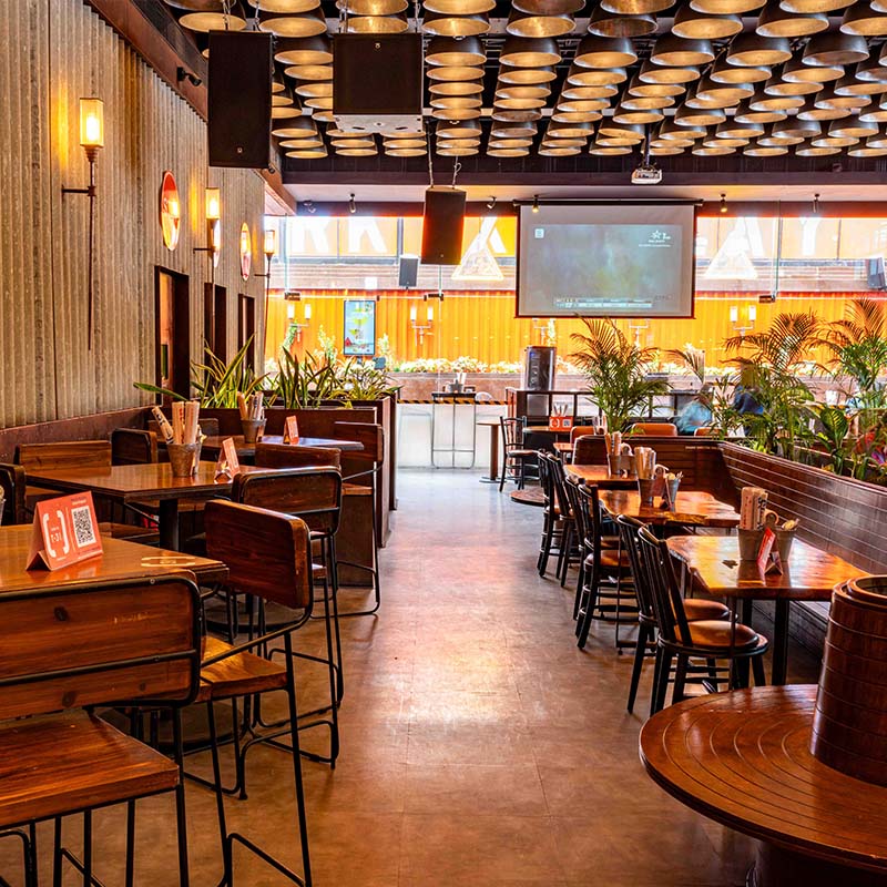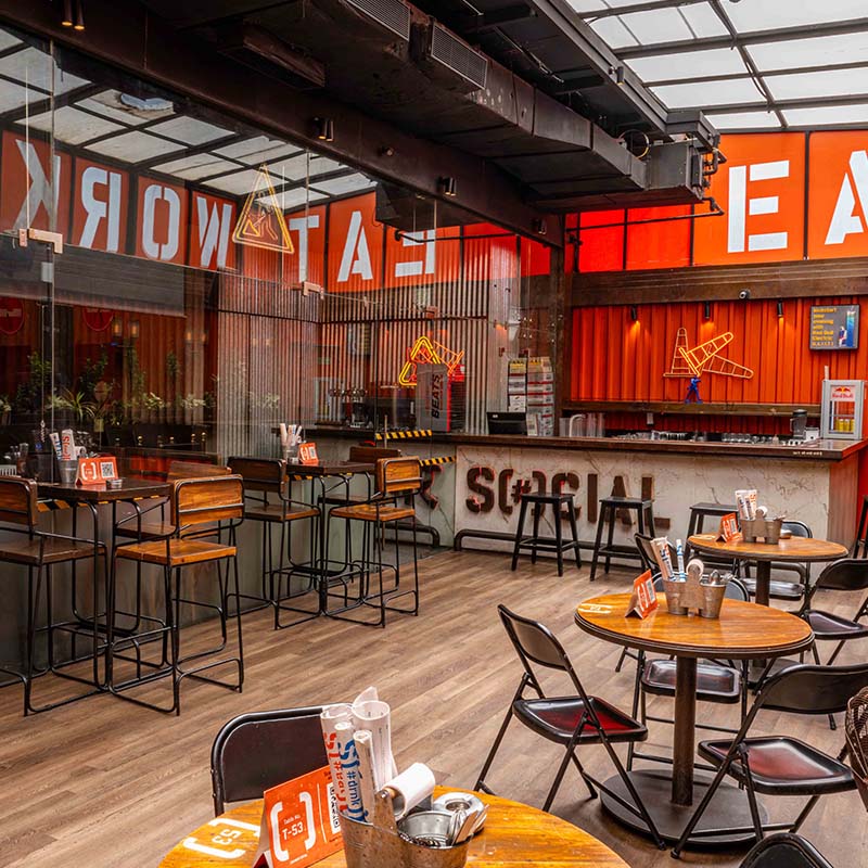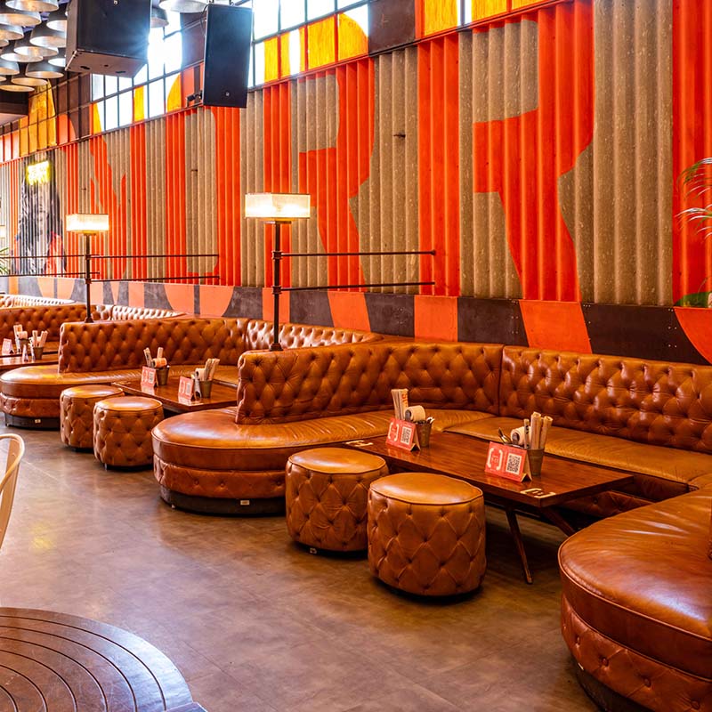 Built amidst Chembur’s buzzing vicinity, the vibrant, unmissable orange facade of Chembur SOCIAL is flanked by construction material, acting as a reminder of the area’s industrial roots. The bright and loud exterior, therefore, catches the eye of every Chemburkar who walks by.