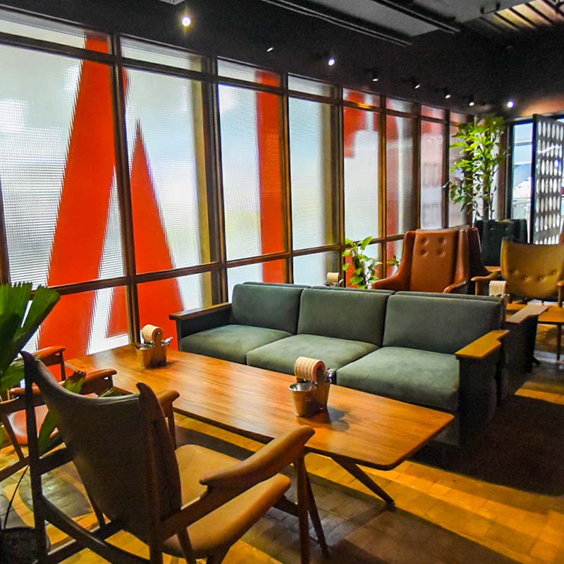 Placed inside the official mascot of capitalism, a mall, SOCIAL’s new outpost provides a stark contrast to the glitz, glamour, and flamboyance that these shiny structures are associated with. Rather, the area is shielded with pixelated glass and convex mirrors that distort how we look at things traditionally, allowing for a counter culture perspective that at the heart of what SOCIAL stands for.