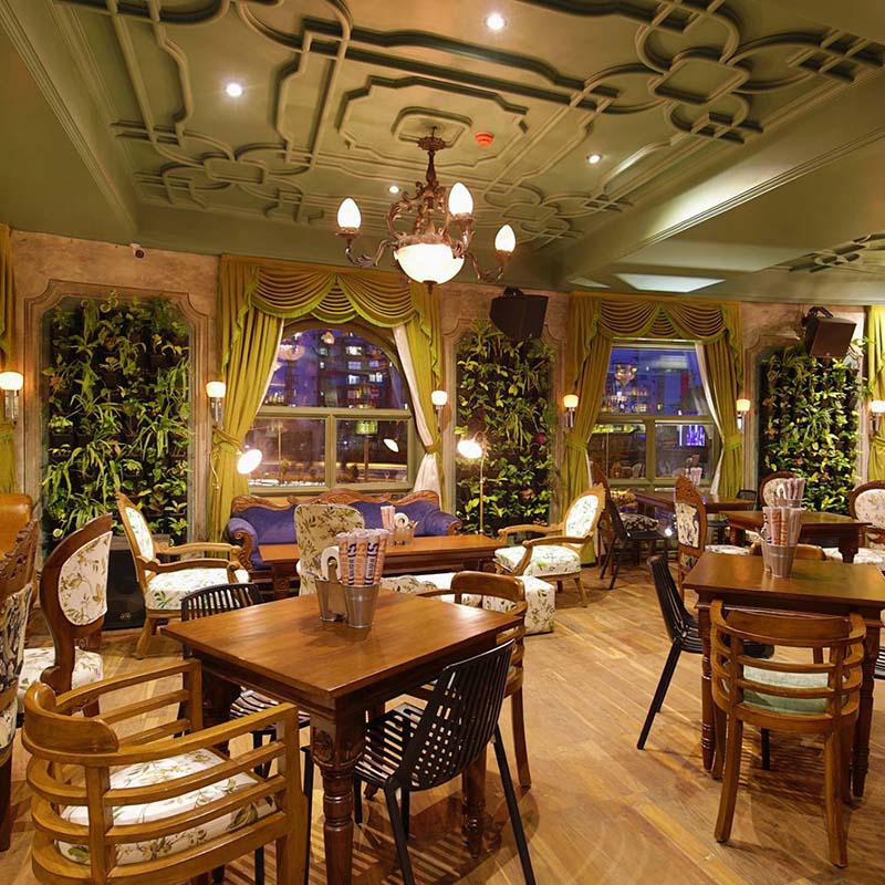 Versova SOCIAL is sprawled over a 3 story outlet, complete with a garden terrace to kick back and gaze out into the sky and ponder life. The interiors are as bohemian as the idea of space in Versova. That’s because Versova Social is designed to look like a Victorian Greenhouse. The split levels as well as the courtyards at multiple levels create nooks and crannies, designed for different moods and varied experiences. The first floor has a large, airy indoor space with a cozy private courtyard garden space, which doubles up as the workspace area, while the second floor has an indoor space and a large courtyard along with an open bar.
