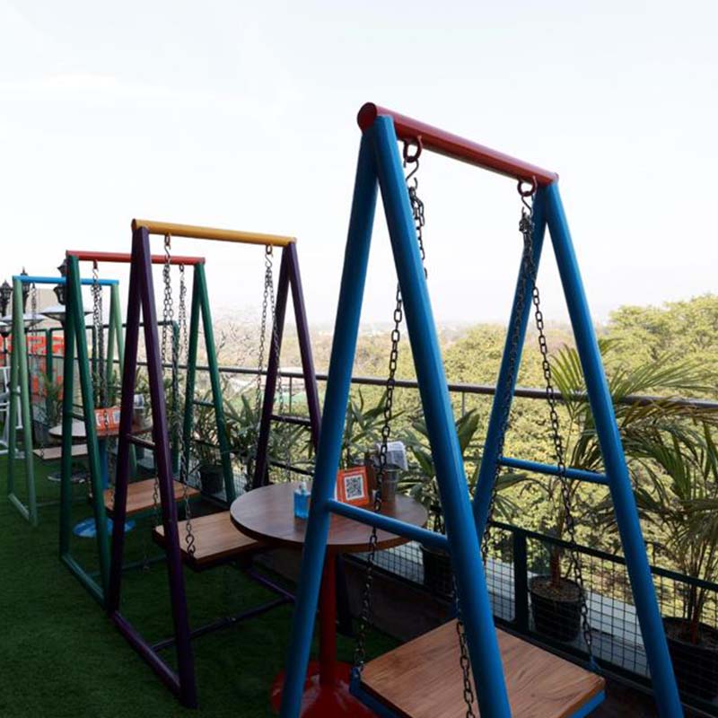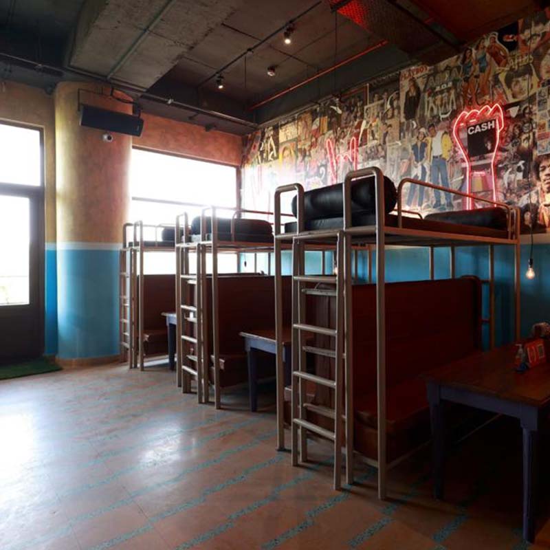 Since Dehradun is known as the educational capital of India, we decided to run with that vibe and design the entire outlet like a school. Think bunk beds turned into comfy seating, quirky notice boards showing off the menu, and a courtside for an epic live music experience. This spot is all about taking you back to the good old days of teachers, books, and math formulas—except now you’ve got a big glass of your favorite drink to calm those pre-exam nerves. And to top it all off, the view of Mussoorie from here is nothing short of breathtaking!